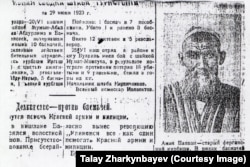 Мадаминбек Ахмабеков (ортодо) өзүнүн генштабы менен Кеңеш бийлигине өткөн учуру. 1920-жылдын март айы
